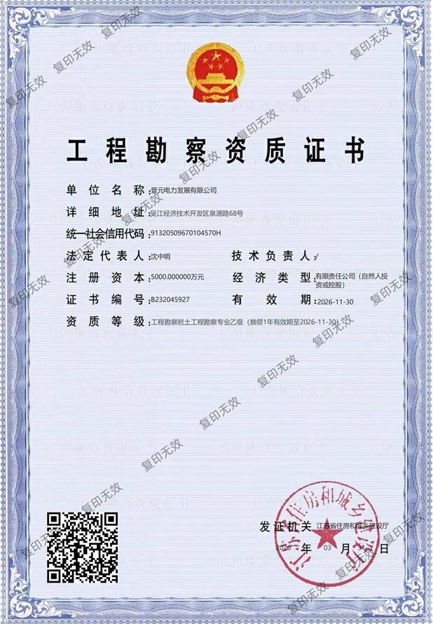 | 承装(修、试)电力设施许可证 | 工程测绘乙级资质证书 |